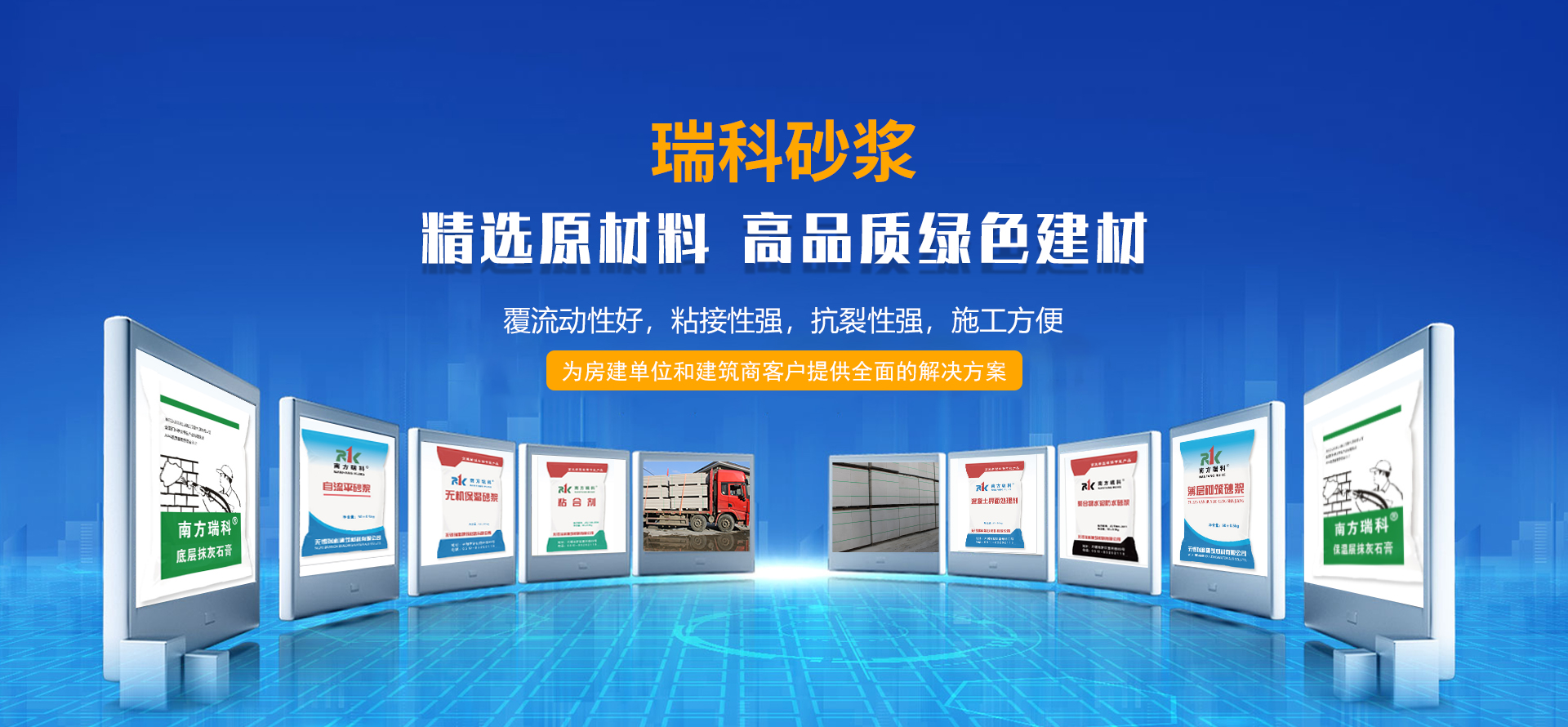 從建公司伊始,瑞科人便把產品的質量當做是自己的生命,目前我公司“瑞科”不僅有普通砌筑抹灰砂漿,還擁有種類多樣的特種砂漿;例如:石膏砂漿(底層抹灰石膏砂漿、面層抹灰石膏砂漿、輕質底層抹灰石膏砂漿、保溫層抹灰石膏砂漿);抗裂砂漿{聚苯板}(EPS)、擠塑板(XPS)、水泥發泡板};粘結劑(陶瓷磚粘結劑、保溫板粘結劑);防水砂漿(普通防水砂漿、聚合物防水砂漿);地面砂漿(普通地面砂漿、水泥基自流平、石膏基自流平)等。同時我們還擁有蒸壓加氣塊,ALC板等建筑材料,堪稱高品質綠色建材,深受房建單位和建筑商的歡迎。
